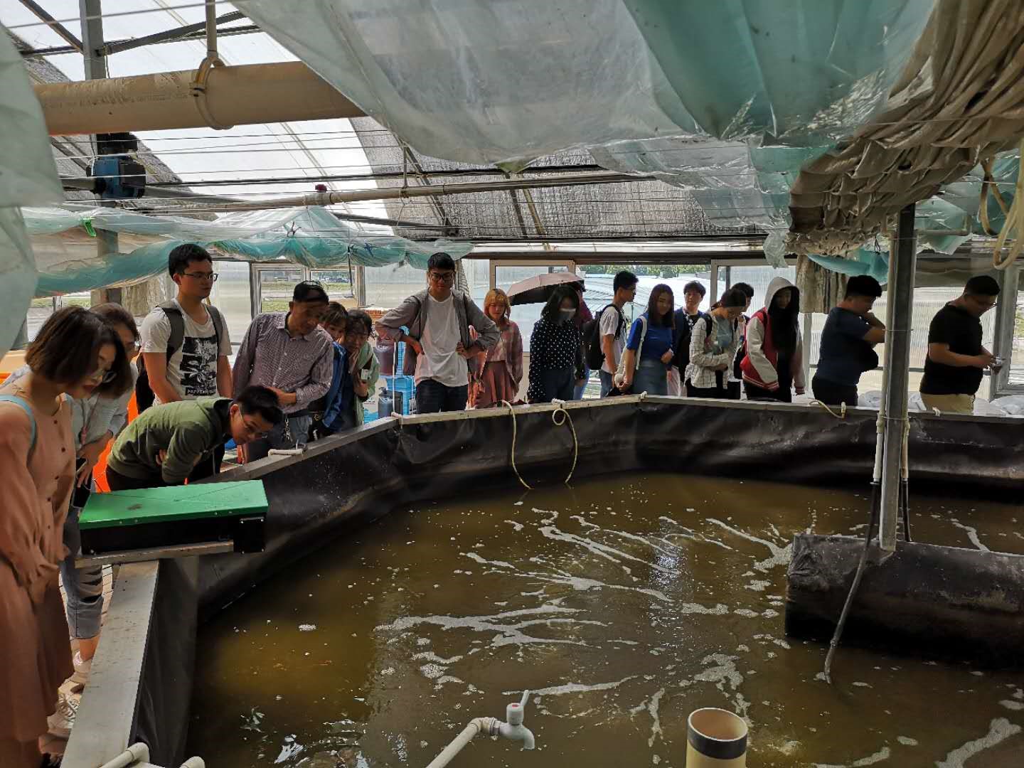 5月22日,上海交通大学农业与生物学院40余名学生在学校老师带队下,到渔机所泖港基地——“池塘生态工程研究中心”进行科普实践活动。