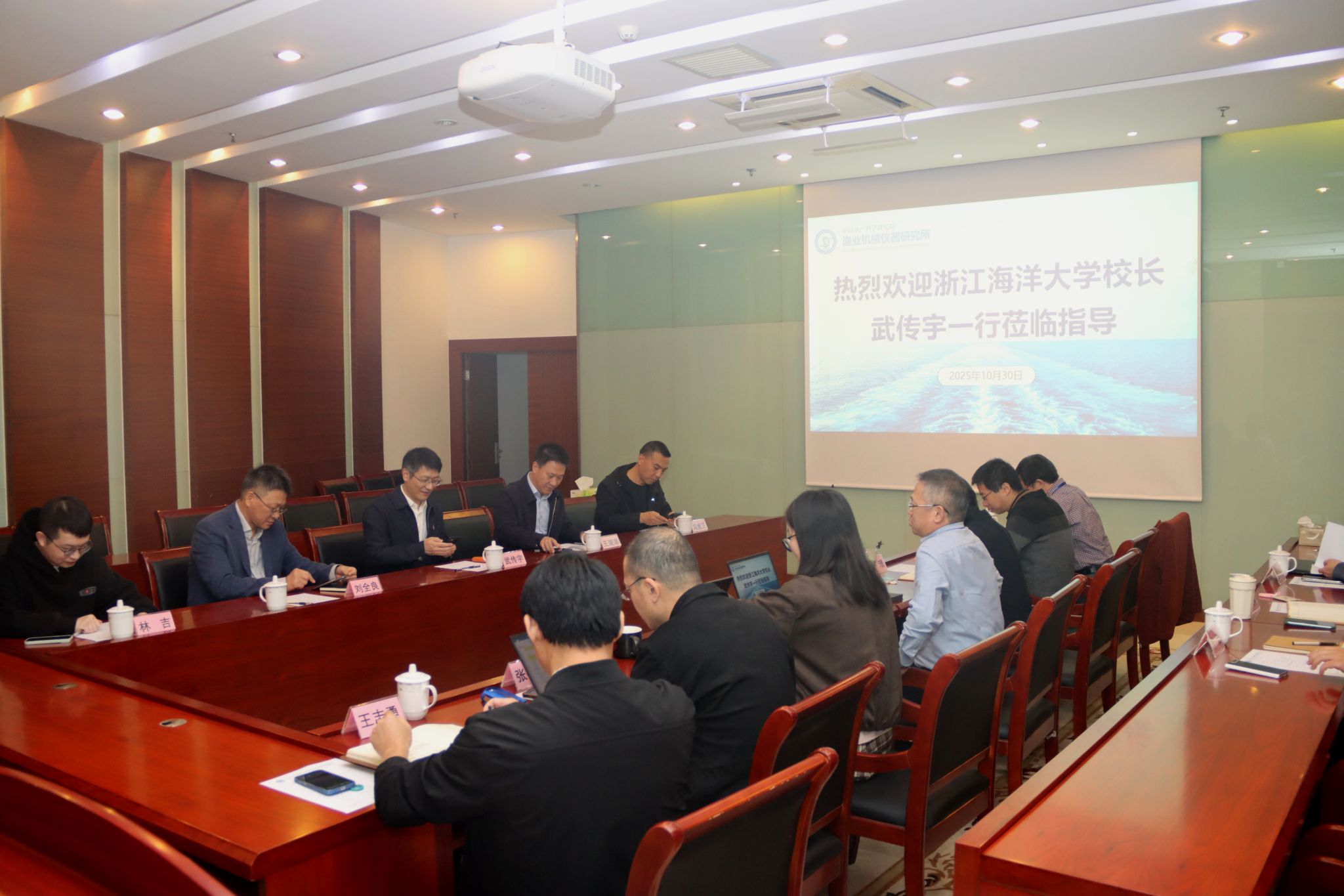 10月30日,浙江海洋大学校长武传宇一行5人到渔机所调研交流。渔机所副所长倪琦及相关部门负责人等参加了座谈。